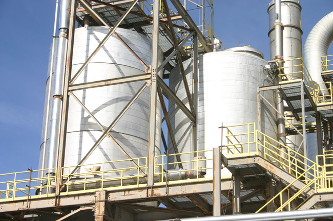 of the 85’ tall steeping building which contained the tanks, steam/flow