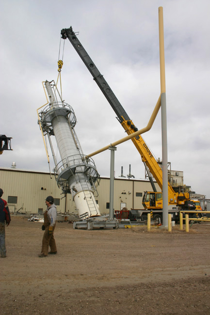 involved the removal of a 56’ tall 13 tray titanium distillation column.